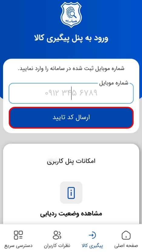 تمدید دوره ردیابی، چاپ نتیجه ردیابی، ویرایش مشخصات کالا و چاپ اطلاعات دستگاه از قسمت پیگیری امکان پذیر است.